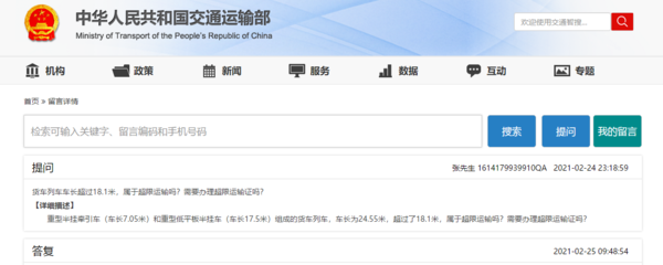 ● 运输冷冻猪肉能不能走绿通:不能近日,有卡友在交通运输部的官网留言咨询:运输家禽生畜肉是否可以享受绿通免费政策?针对此问题,交通运输部做出了以下回答:自2020年7月1日起,全国收费公路对运输种猪及冷冻猪肉的车辆已恢复正常收费。目前《鲜活农产品品种目录》中要求的为“新鲜的鸡蛋、鸭蛋、鹅蛋、鹌鹑蛋、新鲜的家畜肉和家禽肉、新鲜奶”。新鲜肉类免收车辆通行费,冷冻家禽家畜肉正常收费。● 货车列车车长超18.1米属于超限运输吗:属于货车列车车长超过18.1米,属于超限运输吗?需要办理超限运输证吗?近日,有网友在交通部的官网提出疑问,我们来官方的回复。