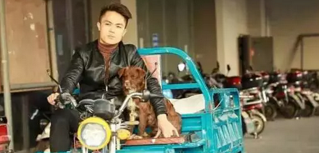 “路上呢,我看它跑来跑去比较危险,就把它抱上了三轮车。”